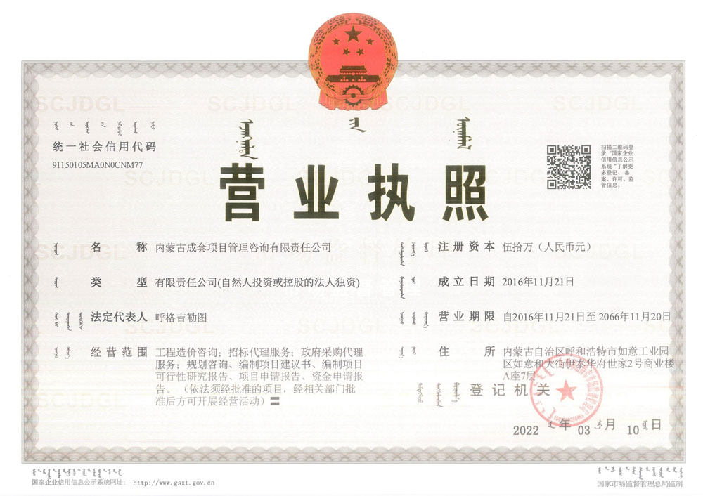 內(nèi)蒙古成套項目管理咨詢有限責任公司營業(yè)執(zhí)照